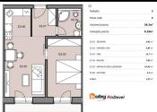 Ponúkaný 2 izbový byt II.B_5E, má celkovú výmeru 46,49 m2, (podlahová plocha bytu 38,20 m2 + 7,07 m2 balkón + 1,27 m2 pivnica), nachádza sa na 2/4 podlaží s výťahom.