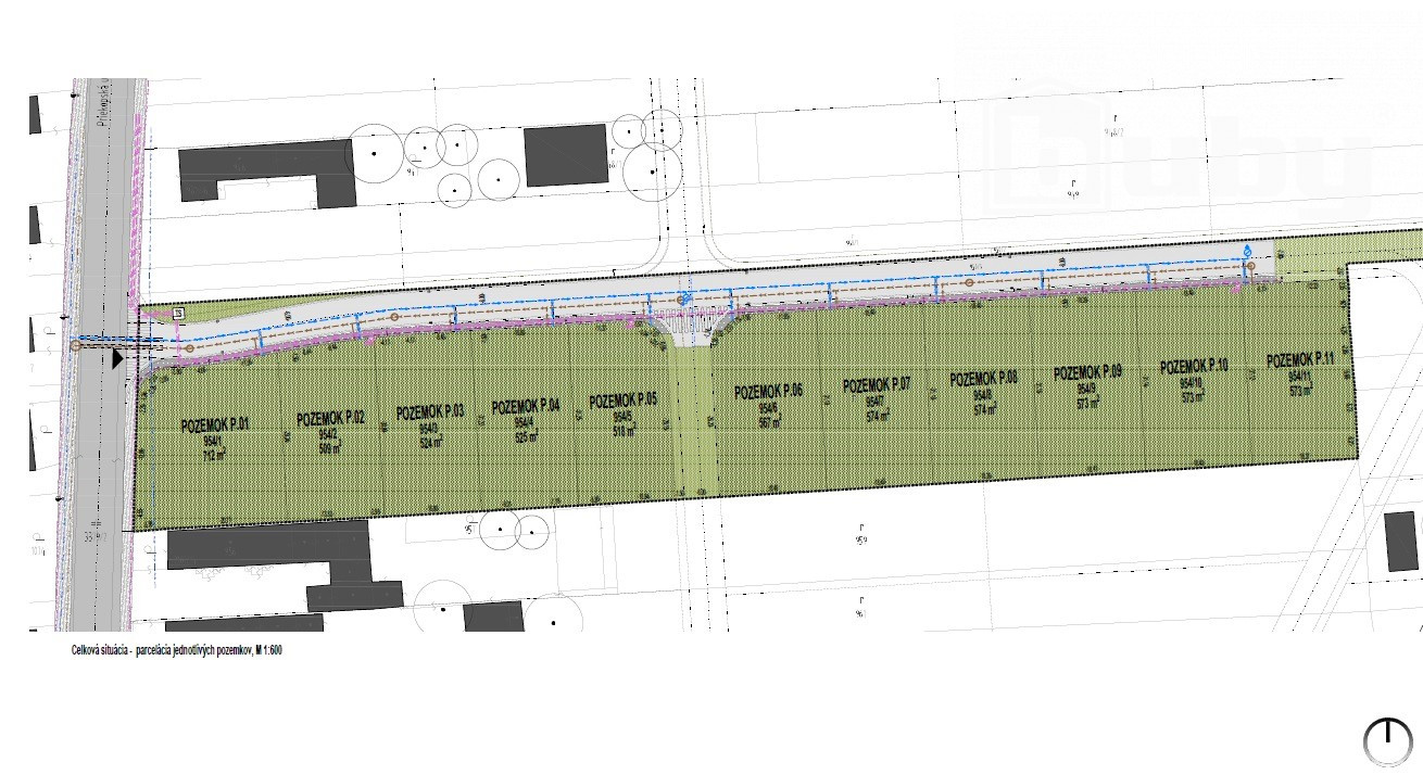 Jednotilvé pozemky sú vo výmerách od 509 - 712 m2.