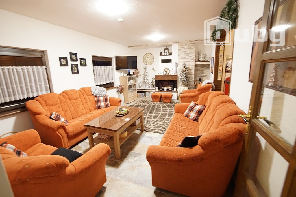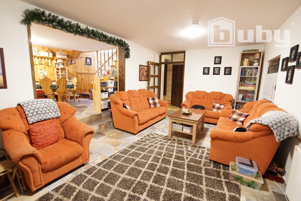- Útulná obývacia izba krbom.