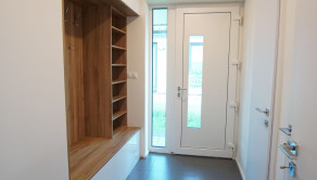 Dom pozostáva zo vstupnej chodby, kuchyne s jedálňou, obývacej izby so vstupom na prestrešenú terasu, samostatnej toalety, technickej miestnosti, kúpeľne s vaňou a toaletou, spálne a dvoch samostatných detských izieb.