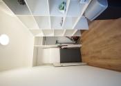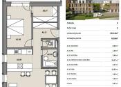 Dispozične pozostáva zo vstupnej chodby, samostatne toalety, kúpeľne s vaňou, spálne so šatníkom a vstupom na loggiu a veľkej obývacej izby s kuchyňou a jedálňou.