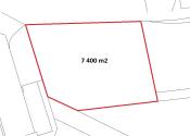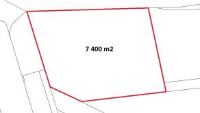 Celková výmera pozemku je 7 400 m2 + prístupová cesta.