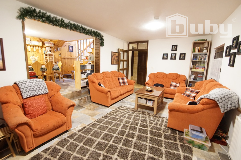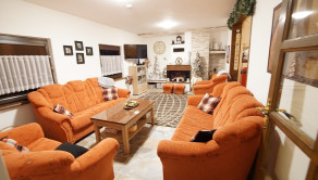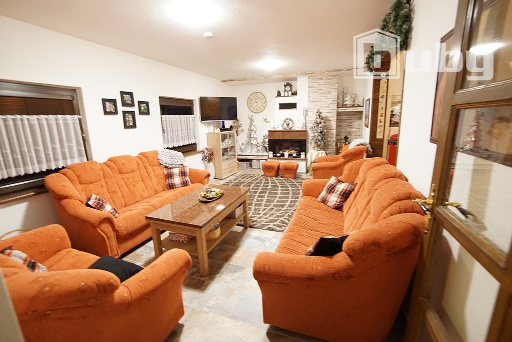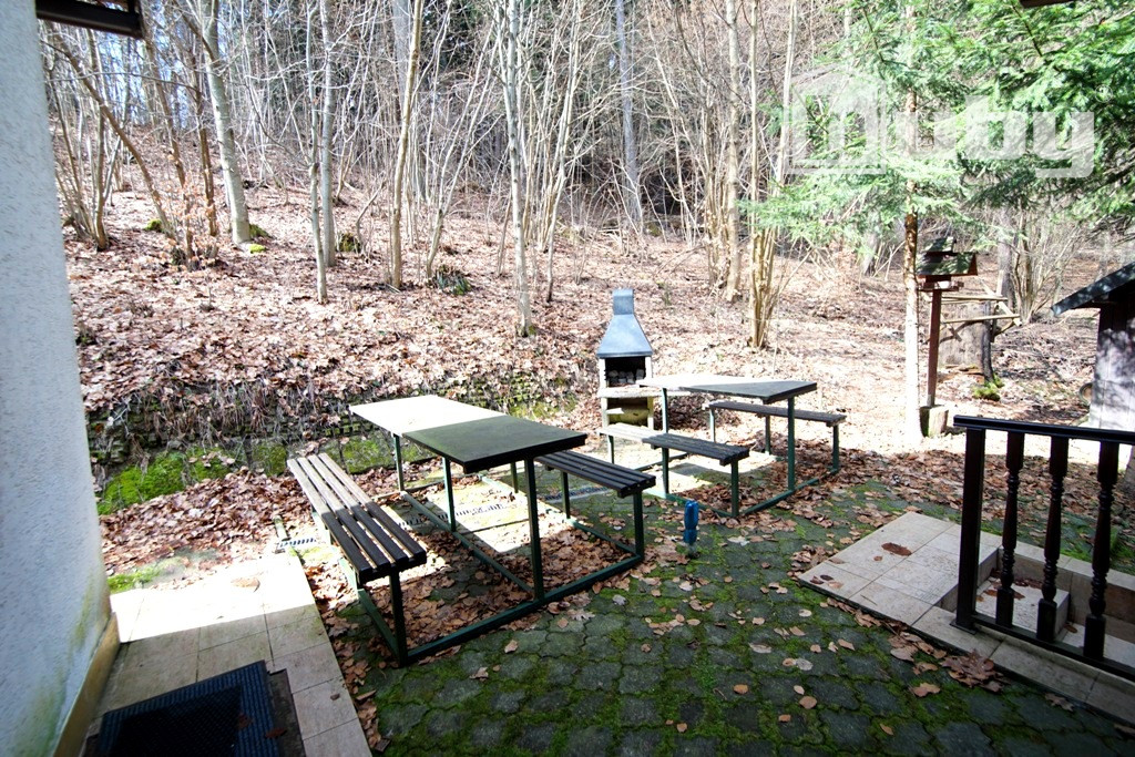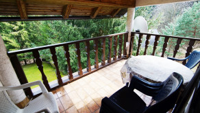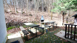 - Priestranná terasa s krbom, s nádherným výhľadom na okolitú krajinu.