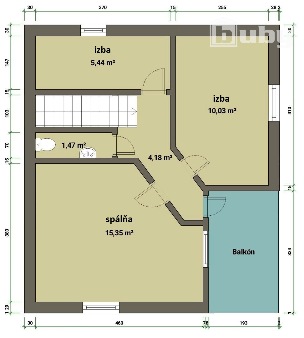 - Úložný priestor v podkroví s možnosťou prerobenia na ďalšie izby.