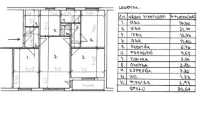 Dispozične byt pozostáva : vstupná chodba, šatník, 2 samostatné nepriechodné detské izby, spálňa so vstavanou skriňou, priestranná obývacia izba so vstupom na zasklený balkón, kuchyňa, kúpeľňa so sprchovacím kútom (Walk-in stena), samostatná toaleta s umývadlom.