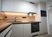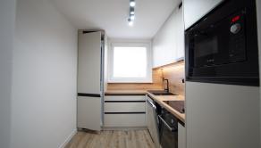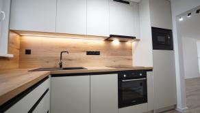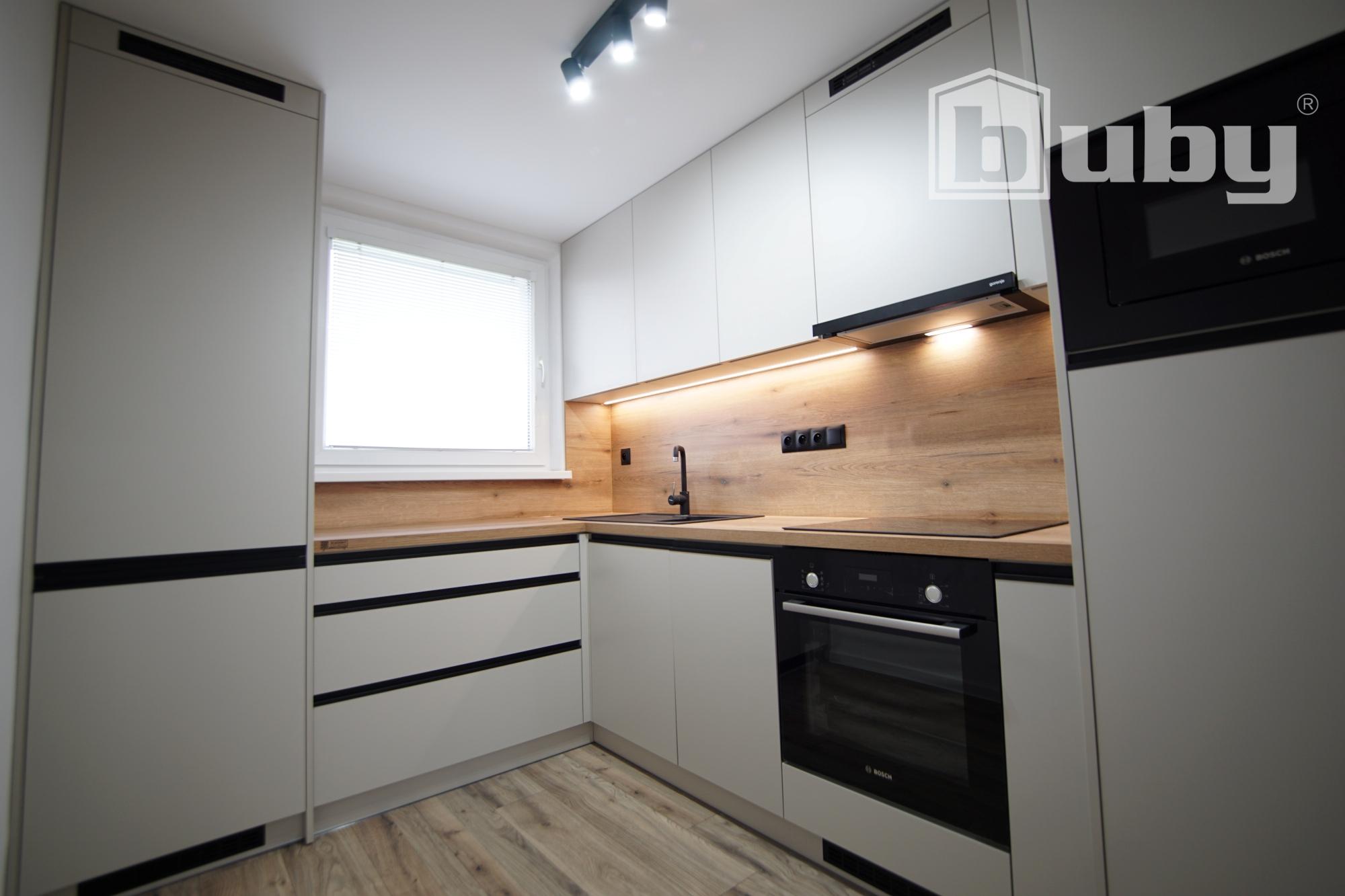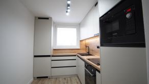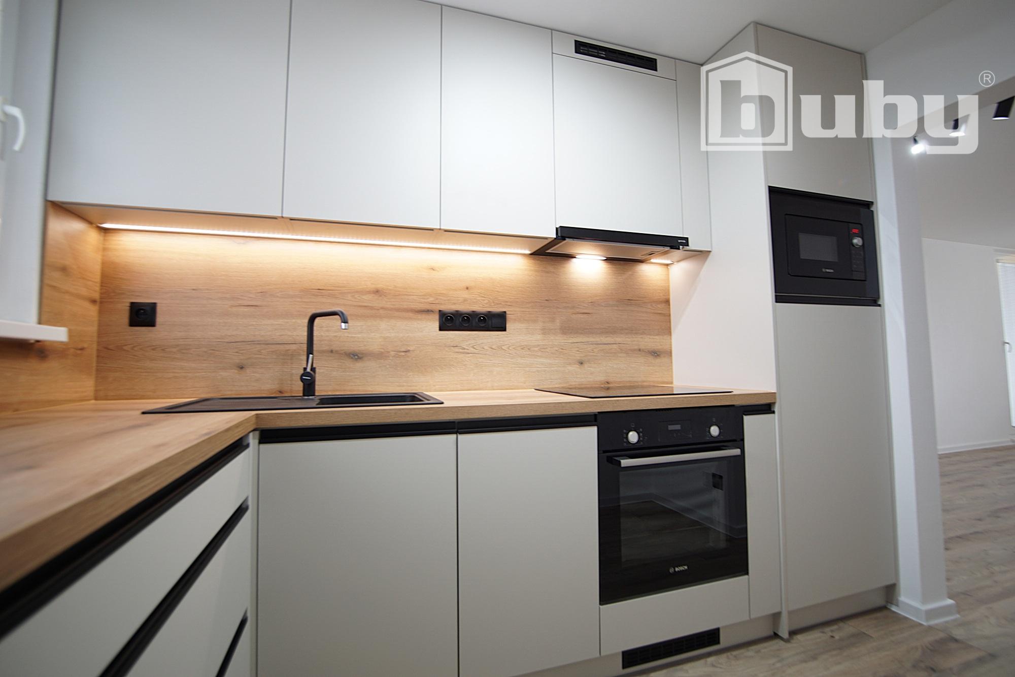- kuchynská linku na mieru so vstavanými spotrebičmi (chladnička, umývačka riadu, sklokeramická varná doska, vstavaná rúra a mikrovlnná rúra),