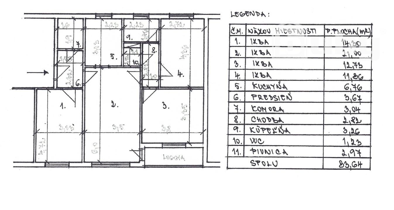 - rozloha bytu: 83,7 m²,