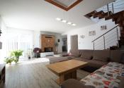 - priestranná obývacia izba s krbom na tuhé palivo a schodiskom,