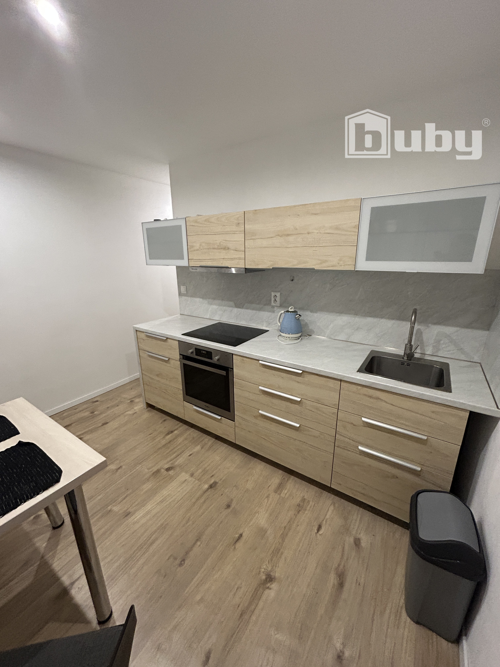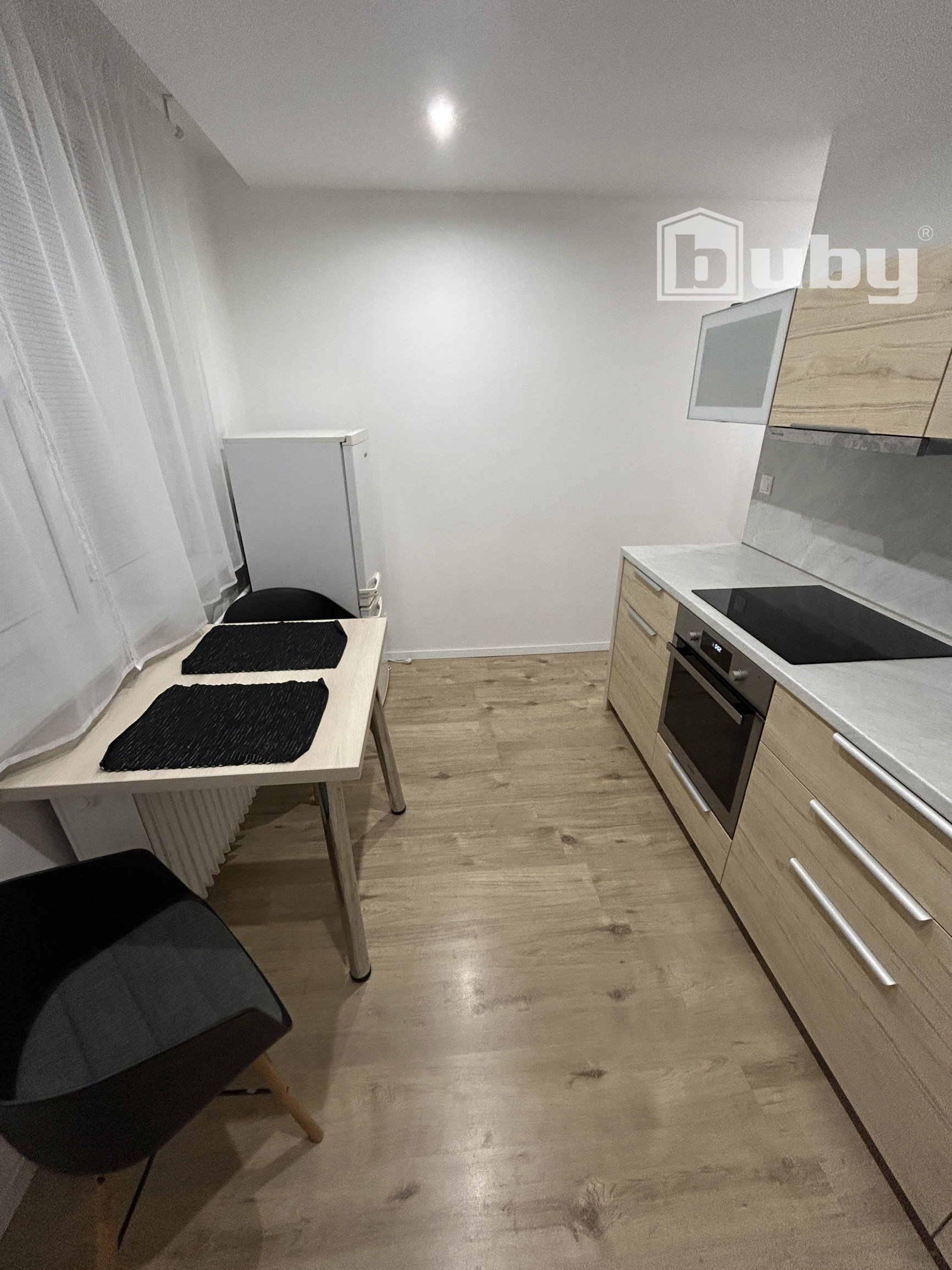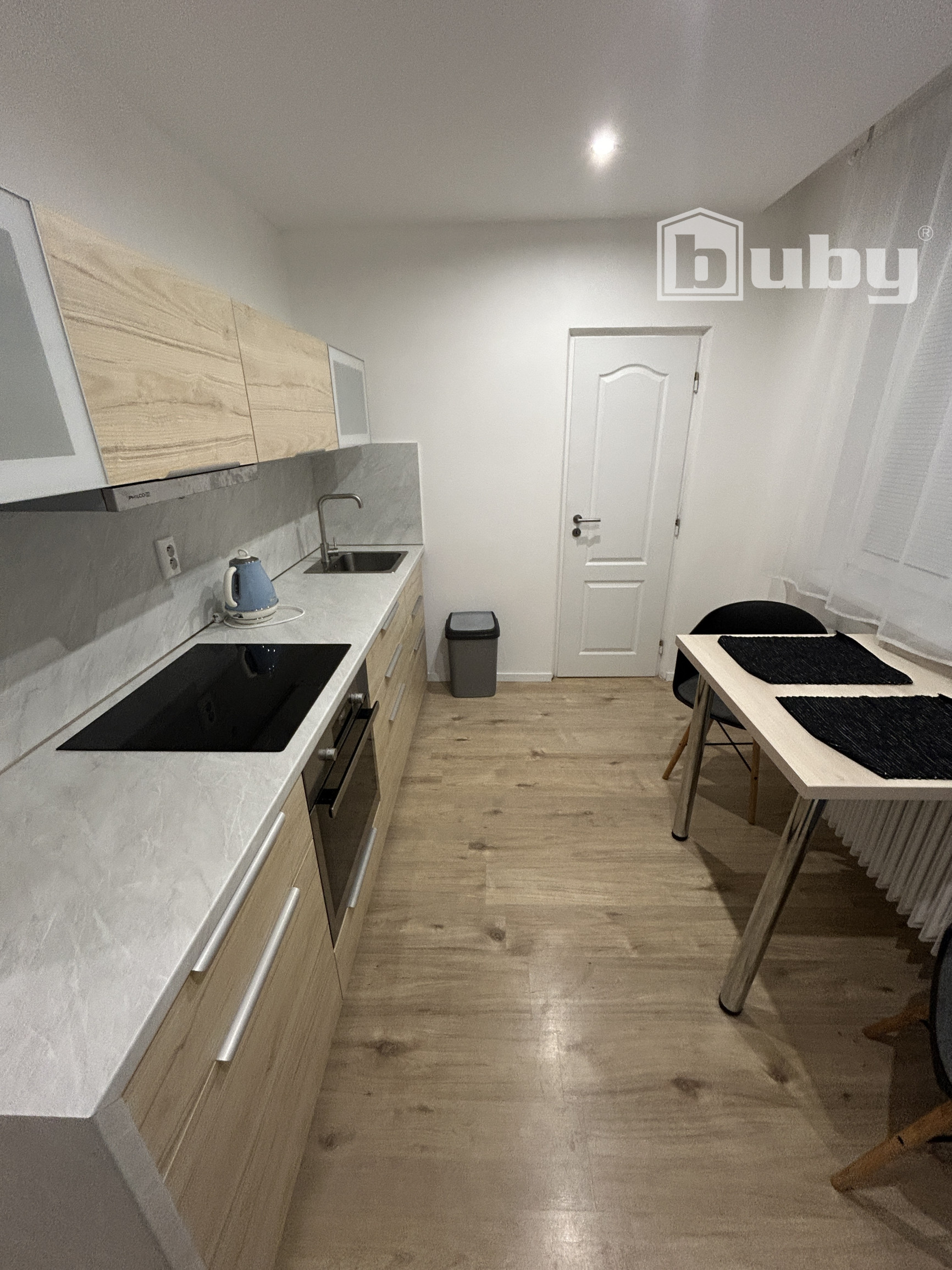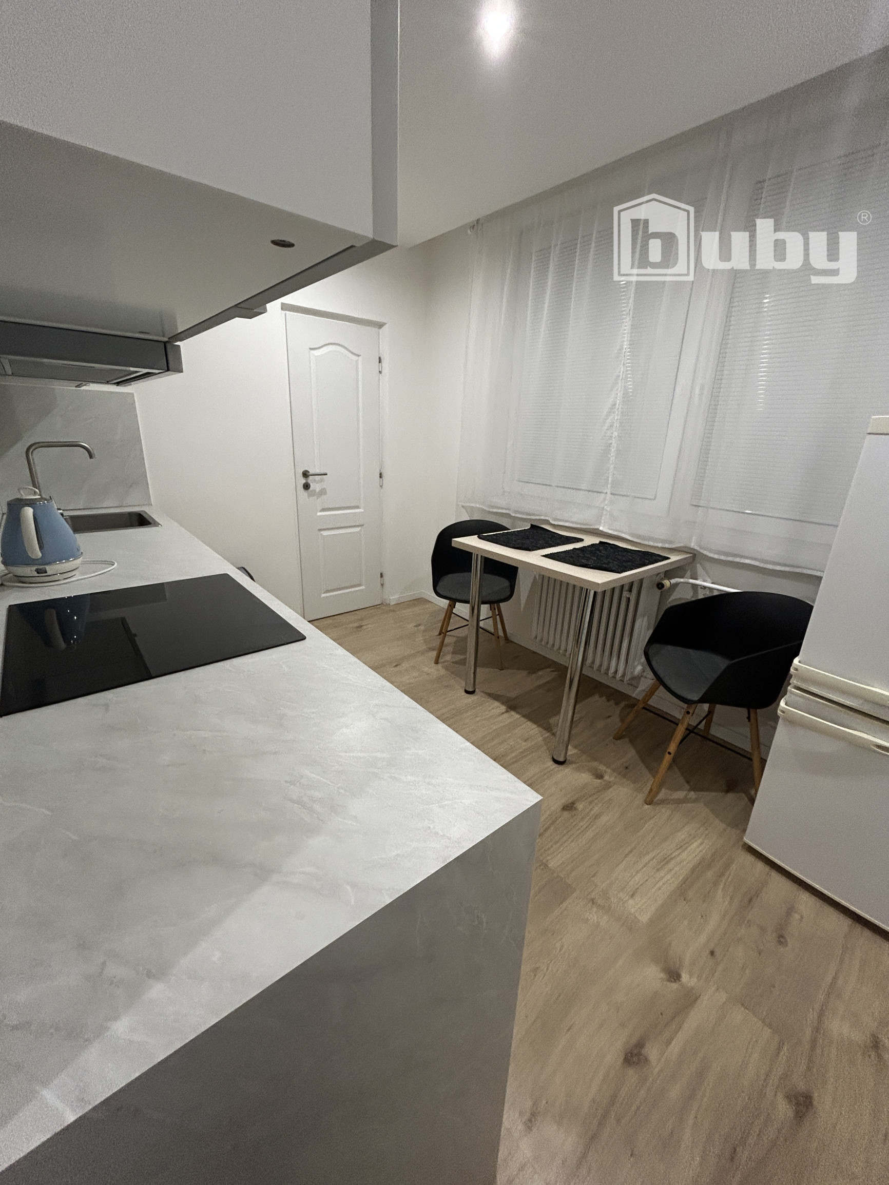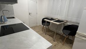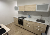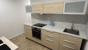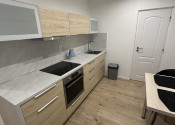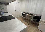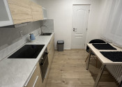 - kuchyňa plne vybavená - elektrická rúra, sklokeramická doska, digestor, rýchlovarná kanvica, chladnička, jedálenský stôl, dve stoličky