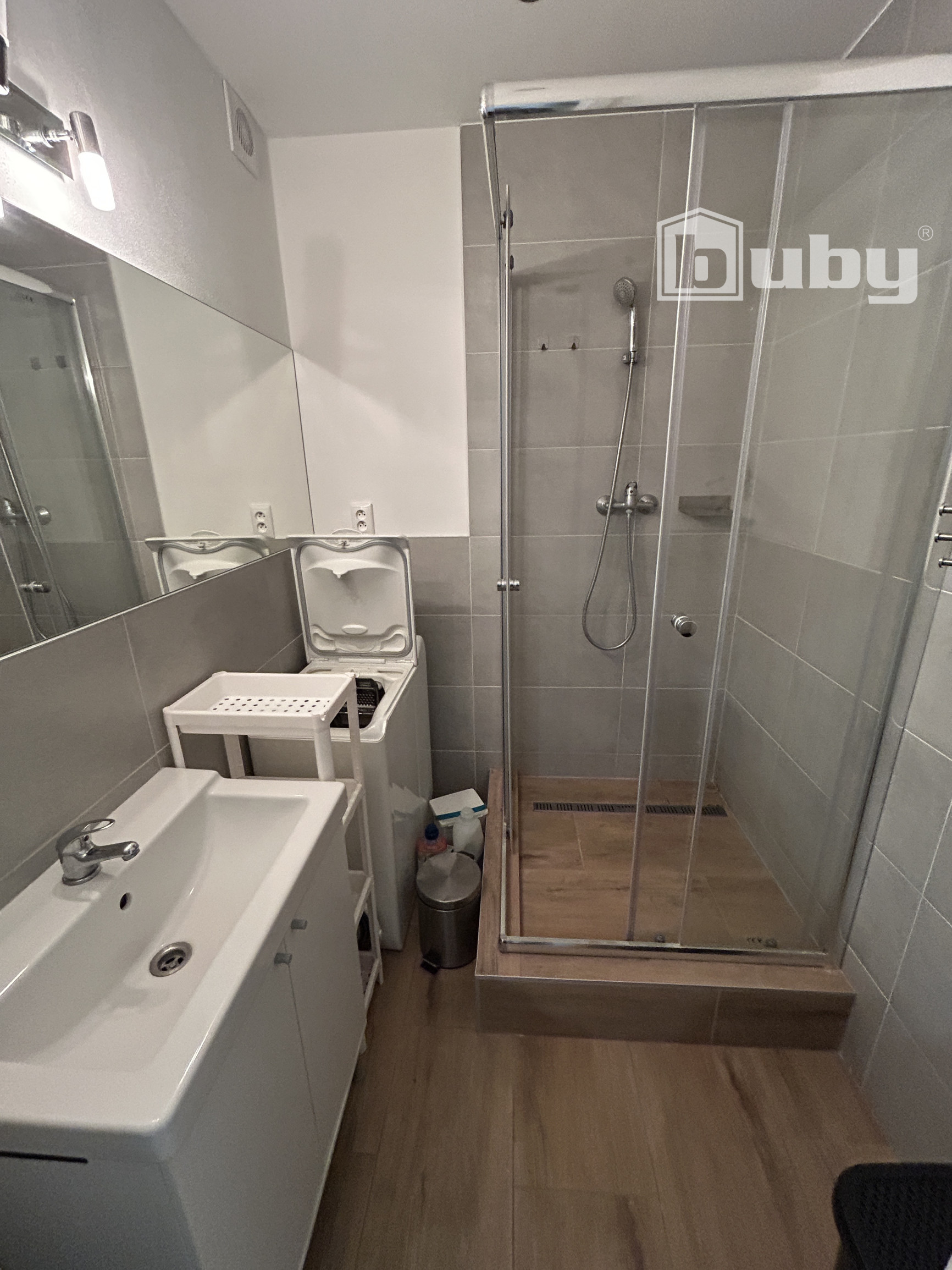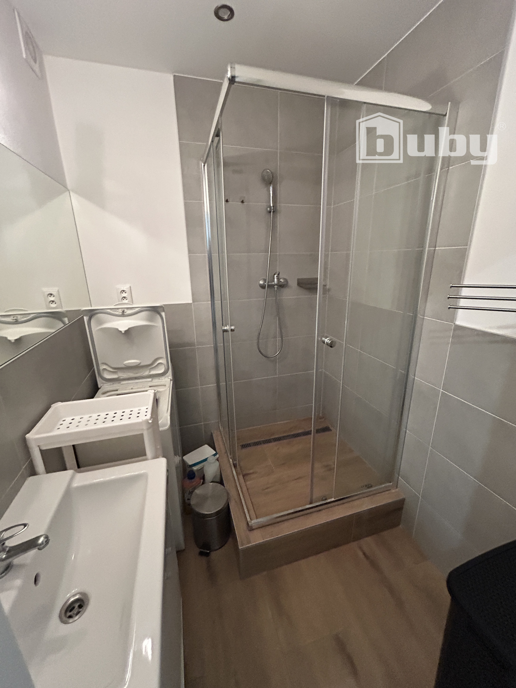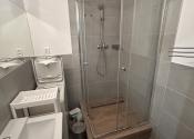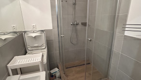 - sociálne zariadenie - murovaná kúpeľňa so sprchovacím kútom, umývadlo so skrinkou, zrkadlo, automatická práčka, samostatné WC