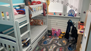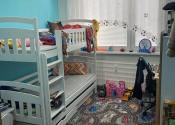 Byt pozostáva zo vstupnej chodby, kuchyne prepojenej s obývacou izbou so vstupom na loggiu, detskej izby, spálne kúpeľne a samostatného WC. K bytu prislúcha jedna pivnica v suteréne domu.