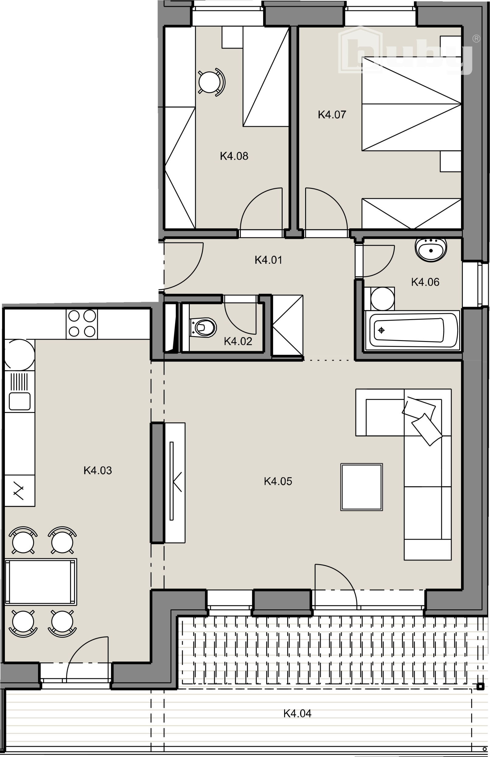 Ponúkame na predaj 3 izbový byt s terasou, v novom developerskom projekte "Byty Ruppeldtova".
