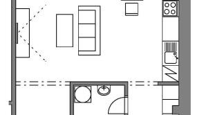 Pozostáva zo vstupnej chodby, kúpeľne so sprchovacím kútom a s toaletou, obývacej izby spojenej s kuchyňou a jedálňou a spacieho kúta.
