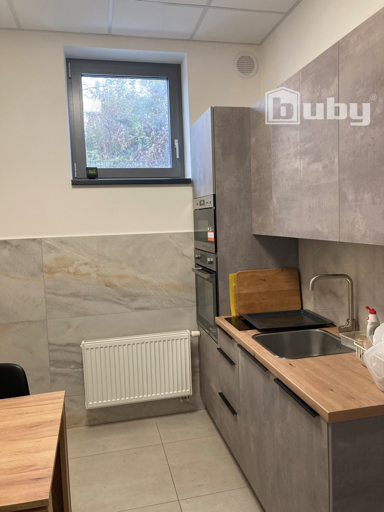 Jedná sa o kanceláriu o výmere 33 m2, situovanú na prvom poschodí v novopostavenej budove. K dispozícií je kuchynka s elektrickými spotrebičmi (umývačka riadku, mikrovlnka, el.trúba) a toalety.