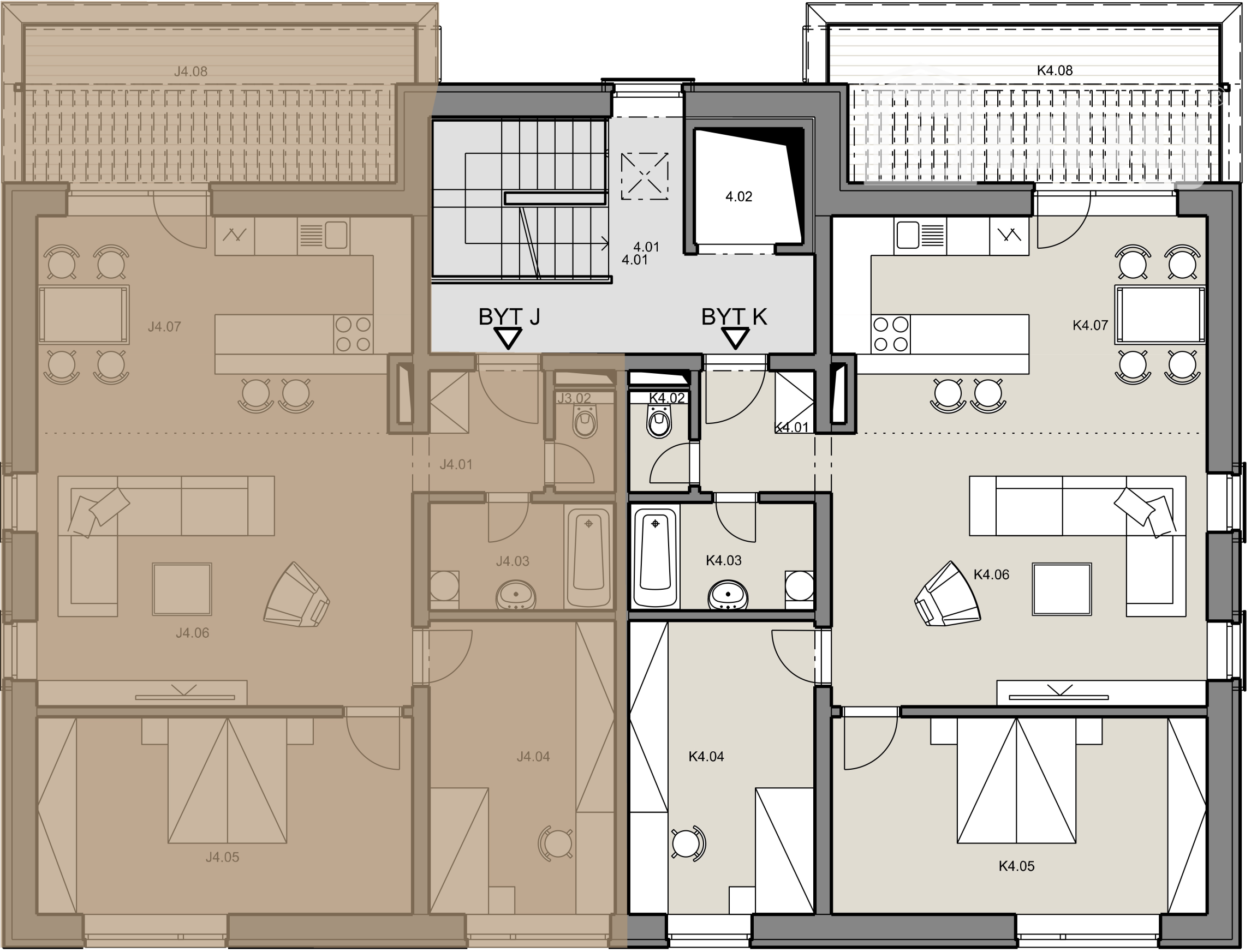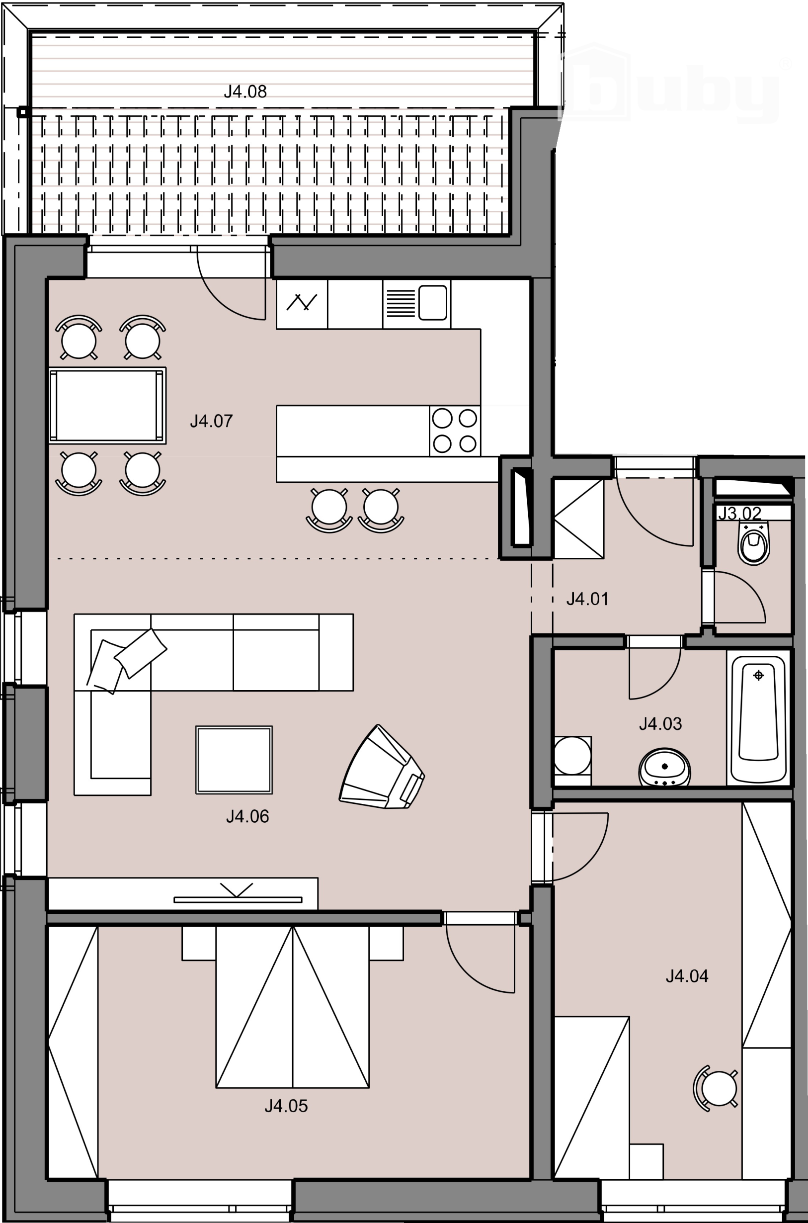 Ponúkaný 3 izbový byt I.B_7J, má celkovú výmeru 96,17 m2, (podlahová plocha bytu 81,25 m2 + 13,65 m2 loggia + 1,27 m2 pivnica), nachádza sa na 4/4 podlaží s výťahom.