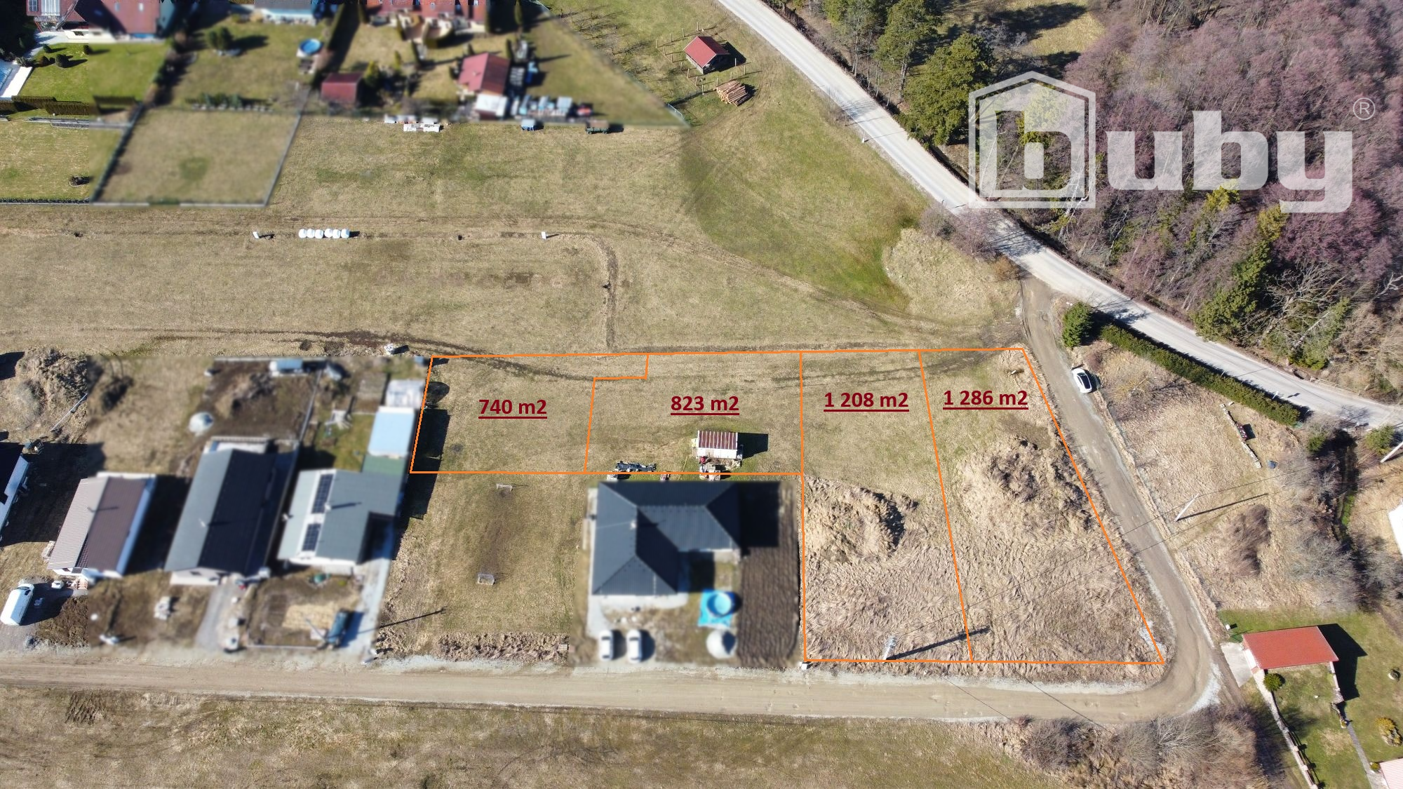 Jedná sa posledné 4 voľné parcely, vo výmerách od 740 m2, do 1286 m2.