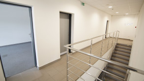 Administratívna časť / Office - je dvojpodlažná, celková plocha 320 m2, obsahuje predajňu, kancelárie, pánske a dámske toalety, kuchynku, serverovňu. Prístupná je priamo od parkoviska a je spojená s halou.